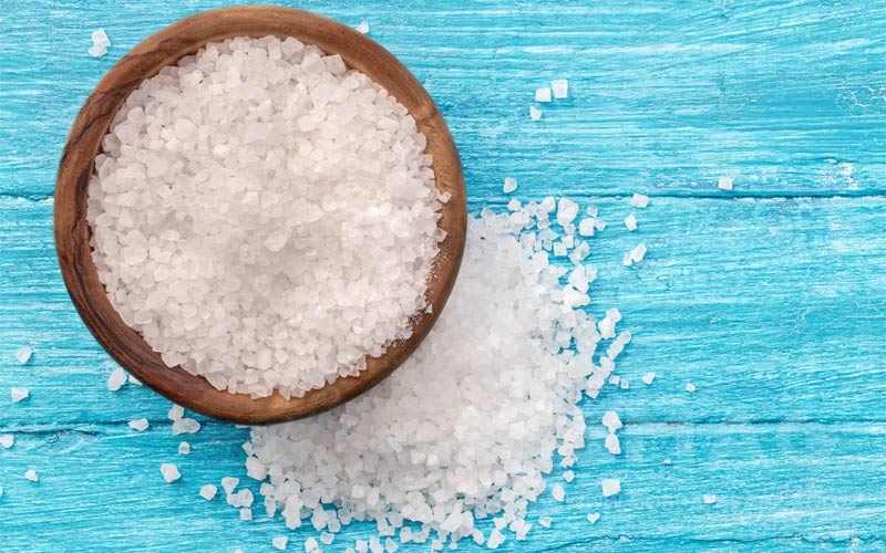 - ۱ تا ۲ قاشق غذاخوری نمک دریا ریزدانه یا نمک اپسوم بردارید.